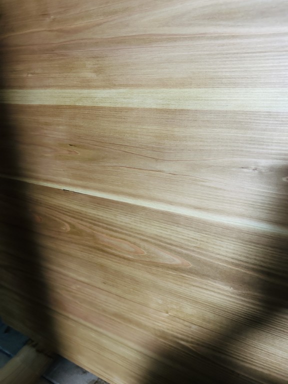 無垢の杉板を注文したので塗装はされていません。天板を保護するという意味で塗装をしていきます