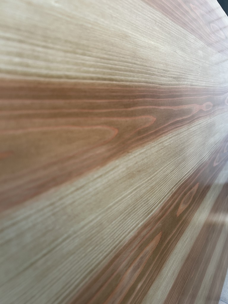 まずは杉の木目を視覚的に美しく出すためブライワックスという蜜蝋を主とした塗料で木材の保護、艶出し、色付けをします。