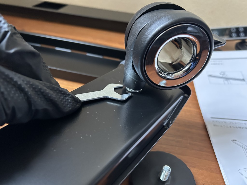 脚部と天板を固定したら高さ調整タッチ式キーパッドの取り付けです。